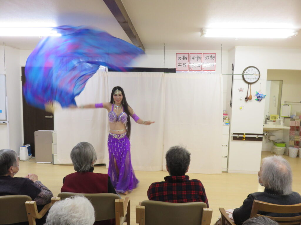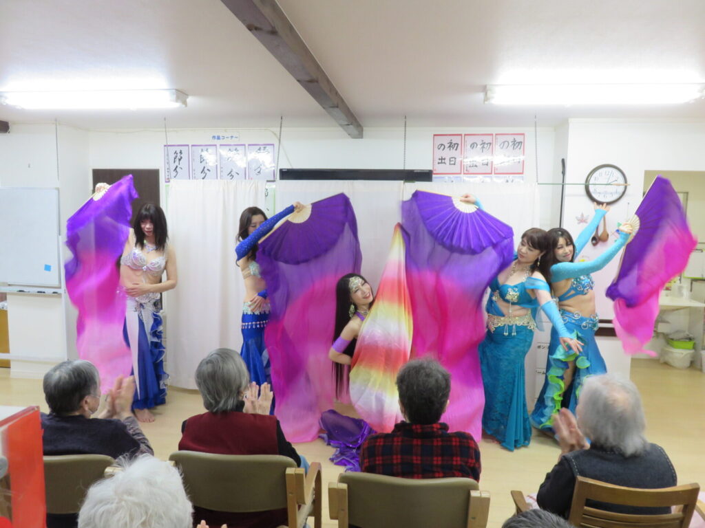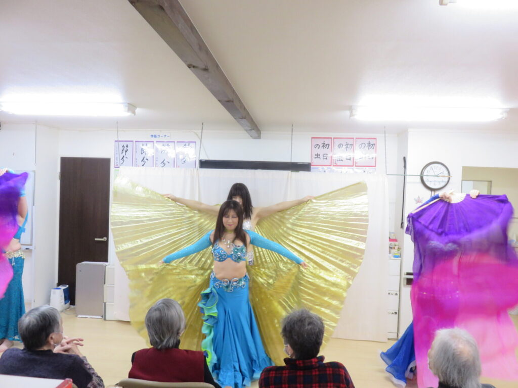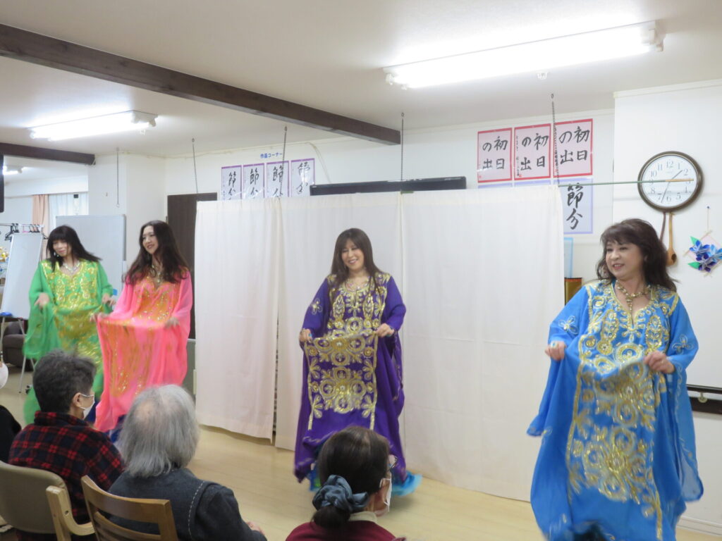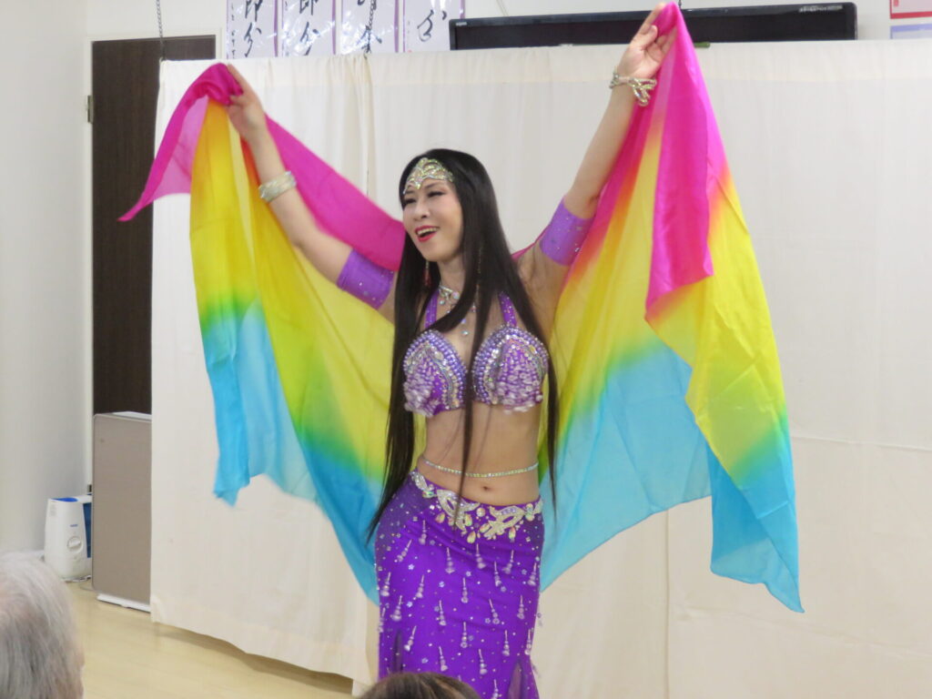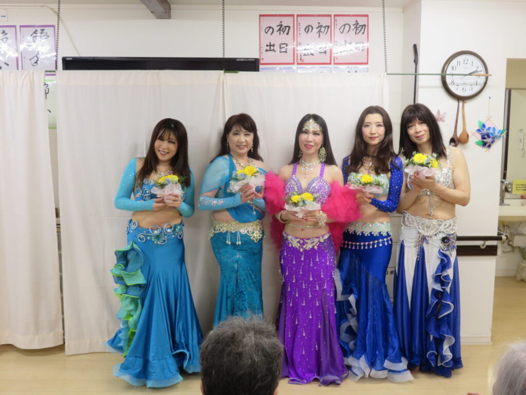 サーラベリーダンスの先生と生徒さんによるベリーダンス公演 きらびやかでカラフルな衣装でしなやかに踊ります 初めてご覧になる方も、毎回楽しみにされている方も こんなに間近で観られる機会はなかなかないですね とまとの家からお花のプレゼント シェアする