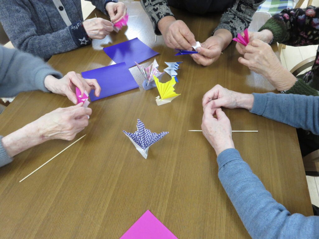 ボランティアグループ「りんどう」さんによる折り紙教室では