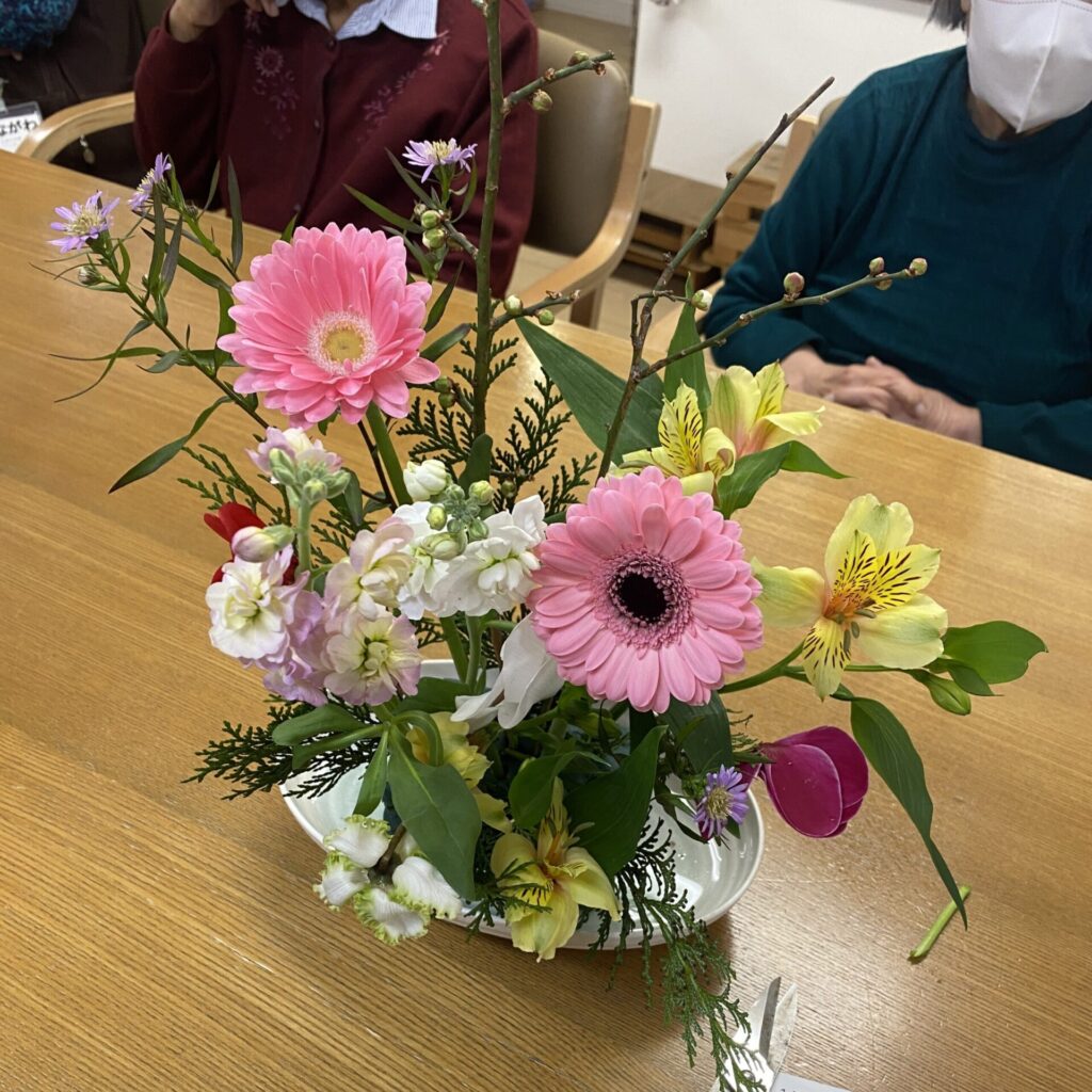今回の花材は、花芯の色が違う2本のガーベラ、